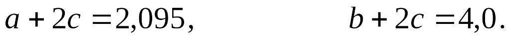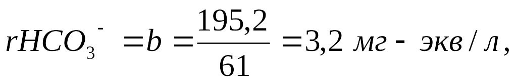 2. Находим суммы эквивалентов Са2+ (а) и НСО3- (в) и удвоенного содержания свободной углекислоты СО2 (с):
