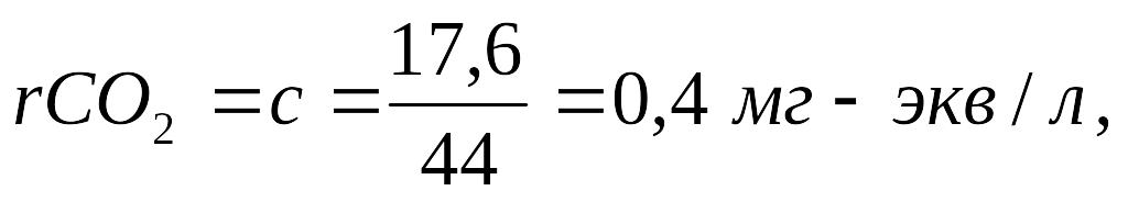 Из этого уравнения равновесия следует, что для поддержания определенной концентрации бикарбонат-ионов HCO3- , требуется, чтобы в воде присутствовало соответствующее этой концентрации количество свободного углекислого газа CO2, называемое равновесным.