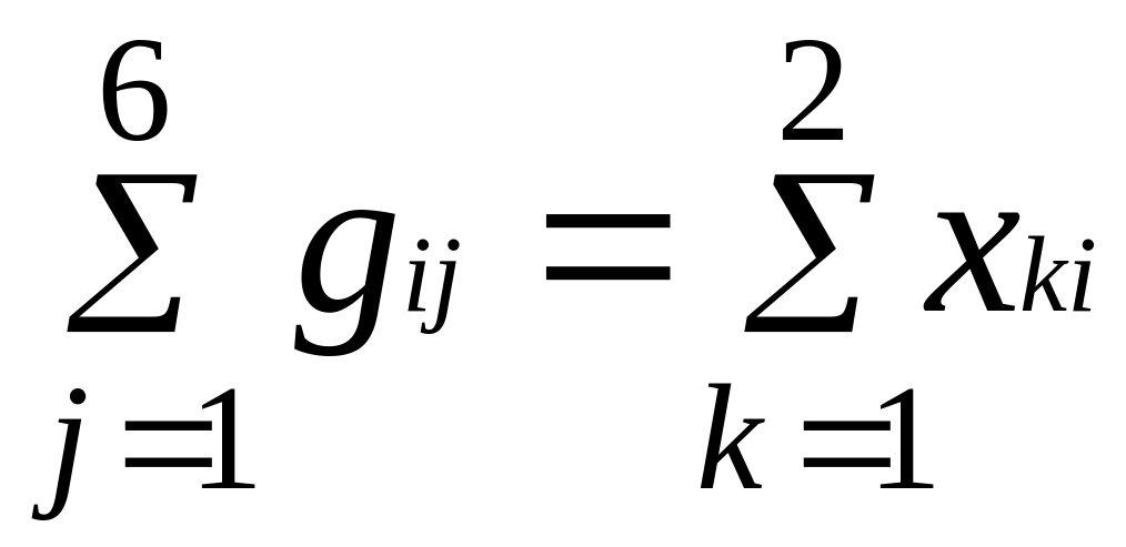 Объем поставок, отправленных с каждого из заводов, должен быть равен ( не должен превышать) их двусменного объема производства: