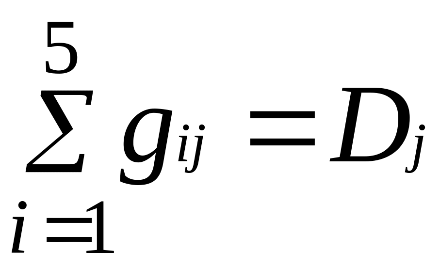 Объем перевозок продукции в каждый из регионов потребления должен быть равен имеющемуся в них спросу, т.е.