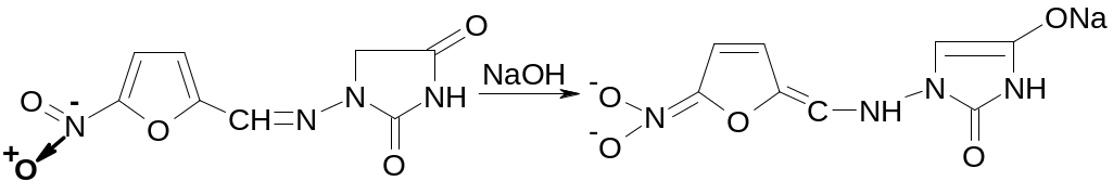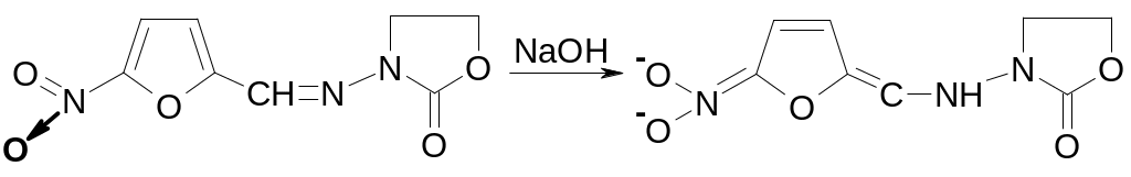 Нагревание фурадонина и фуразолидона с раствором щелочи приводит к частичному разрушению молекул веществ.