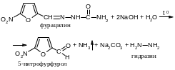 При нагревании со щелочью фурацилин разлагается с выделением аммиака: