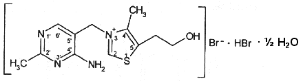 4-метил-5-β-оксиэтил-N-(2'-метил-4'-амино-5'-метилпиримидил)-тиазолий бромида гидробромида полугидрат