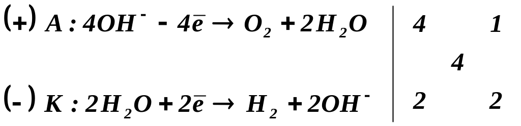 2) Електроліз розчину калій гідроксиду: