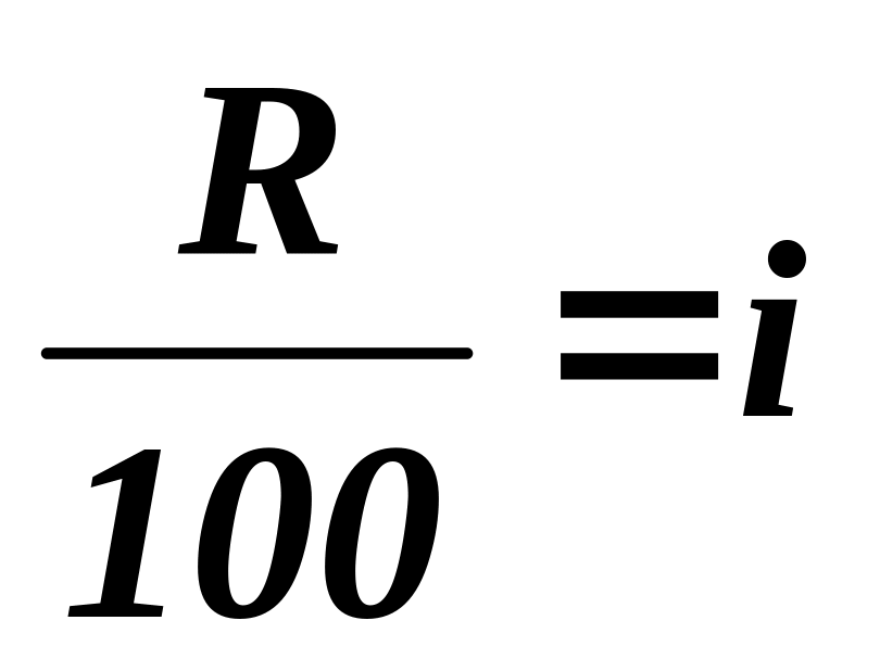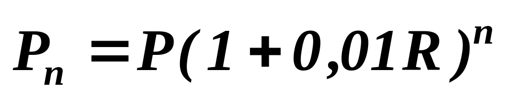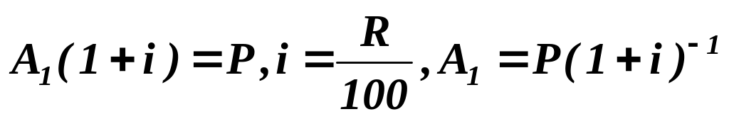 Так, якщо сума капіталу P вкладена під R відсотків річних,то після першого року буде одержано прибуток величиною