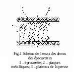 L’éprouvette avec les plaques on met sur le plateau d’assis de la presse. La vitesse moyenne de l’augmentation de charge est 2 MPa/sec. La résistance a la compression on calcule par la formule: