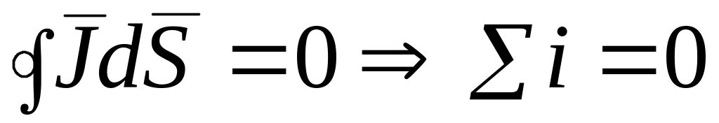 По теореме Остроградского-Гаусса возьмем поверхностный интеграл и охватим этой поверхностью узел, из которого вытекают или в который втекают токи.