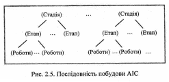 Процес створення АІС (рис. 2.5) являє собою сукупність упорядкованих у часі, взаємозв'язаних і об'єднаних у стадії та етапи робіт, виконання яких необхідне і достатнє для створення системи, що відповідає заданим вимогам.
