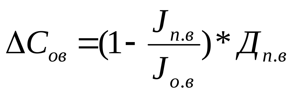 ΔCнт – зниження собівартості продукції за рахунок зростання продуктивності праці, що перевищує ріст заробітної плати, %; ΔСов – зниження собівартості продукції за рахунок зростання обсягу виробництва при незмінній величині постійних витрат; Jз.пл, Jп.п, Jп.в, Jо.в – відповідно індекс зміни заробітної плати, продуктивності праці, постійних витрат та обсягів виробництва; Дз.пл, Дп.в – відповідно доля заробітної плати та постійних витрат у структурі собівартості продукції ΔС – загальне зниження собівартості, % ΔЕ – економія від зниження собівартості продукції, грн |