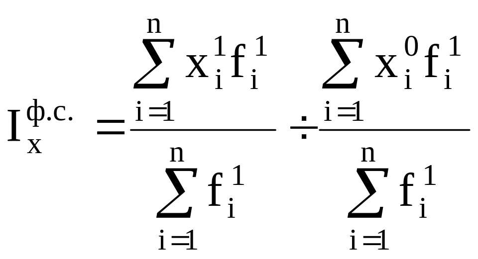Если любой качественный индексируемый показатель обозначить через х, а его веса — через - f, то динамику среднего показателя можно отразить как за счет изменения обоих факторов (х и f), так и за счет каждого фактора отдельно. В результате получим три различных индекса: