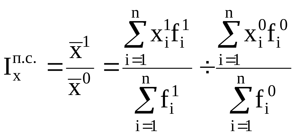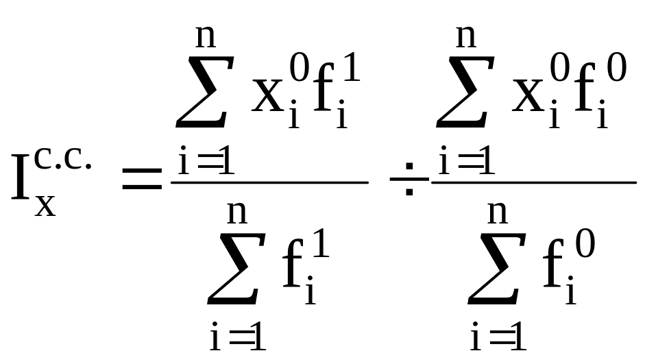 Индекс переменного состава отражает динамику среднего показателя (для однородной совокупности) за счет изменения индексируемой величины х у отдельных элементов (частей целого) и за счет изменения весов f, по которым взвешиваются отдельные значения х. Любой индекс переменного состава — это отношение двух средних величин для однородной совокупности (за два периода или по двум территориям).