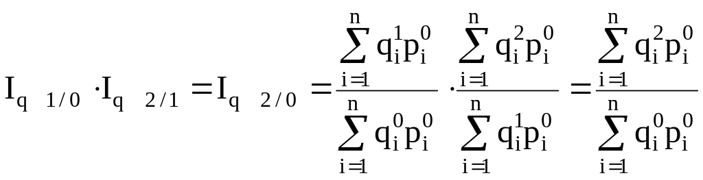 Произведение цепных агрегатных индексов при постоянных весах равняется базисному агрегатному индексу: