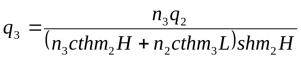 (14.15) және (14.20) теңестіре отырып және q3 қарағанда шешімді анықтай отырып, коронка корпусында жылулық ағын үшін мәнді аламыз: