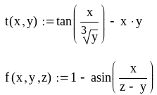 В MathCAD можно определять новые функции как одного, так и нескольких аргументов. Для этого необходимо: