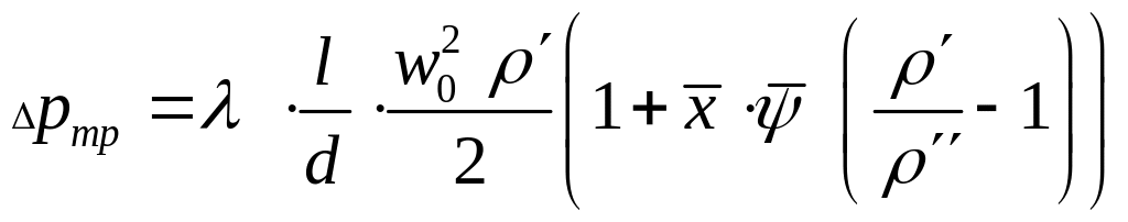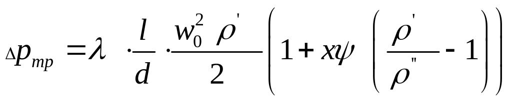 Потери на трение при движении пароводяной смеси при постоянном паросодержании (необогреваемая труба рис. 10.1.б) определяется по формуле: