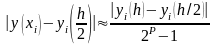 Практическую оценку погрешности решения, найденного на сетке с шагом h/2, в точке xi[a, b] производят с помощью приближенного равенства – правила Рунге: