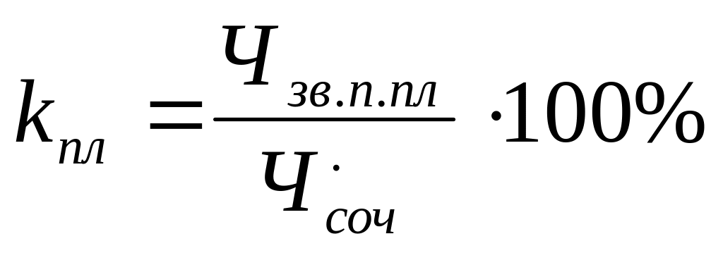 Коефіцієнт плинності персоналу (kпл) – це відношення чисельності звільнених з роботи працівників (Чзв.п. пл) поза планом з причин, не пов’язаних з виробництвом (за власним бажанням, за порушення трудової дисципліни, нещасний випадок та ін.), до середньооблікової чисельності працівників за той самий період (Чсоч):