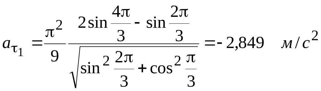 6. Вычисляем проекции линейного ускорения точки на естественные оси координат. Зависимость касательного ускорения от времени имеет вид: