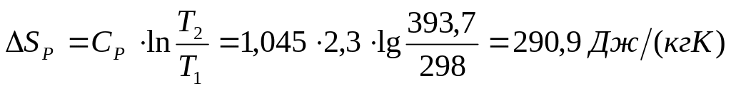 Ответ: Изменение энтропии в изобарном процессе составило 290,9 Дж/(кгК).