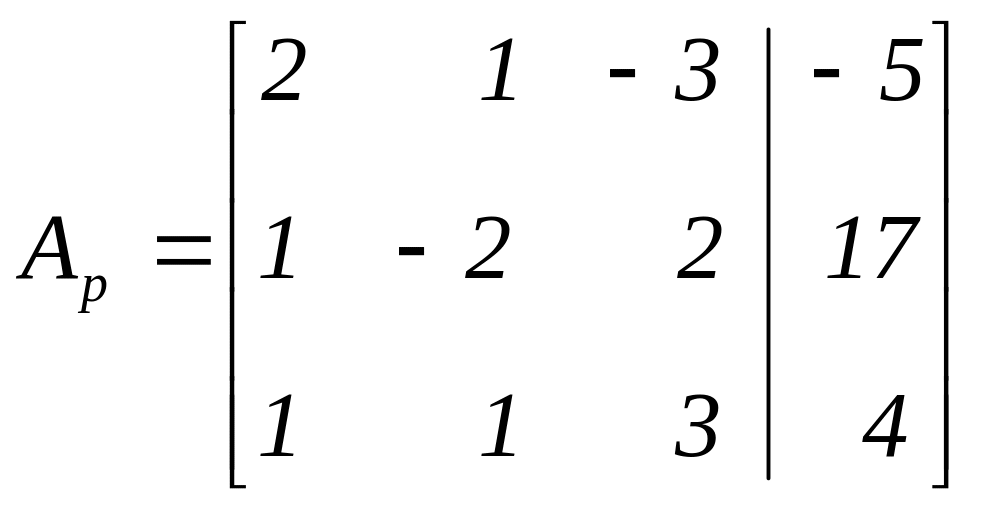 Умножим 1-ю строку на –1 и –2 и сложим, соответственно, со 2-й и 3-й строкой: