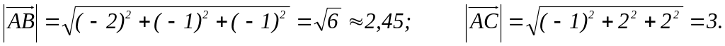 Длины этих векторов, т.е. длины ребер AB и AC, таковы: