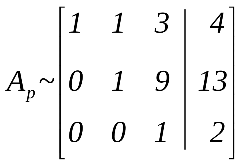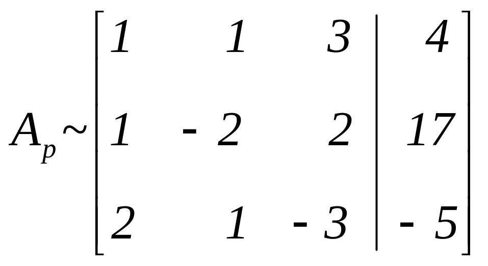 меньше числа неизвестных. Приведем матрицу А к трапециидальному виду путем элементарных преобразований. Умножим 1-ю строку на 4 и на 8 и вычтем, соответственно из 2-й и 3-й строки, получим: