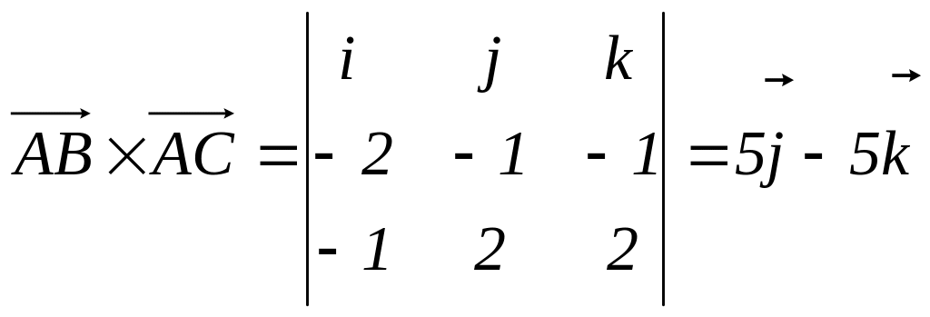 3) Площадь грани ABC равна половине площади параллелограмма, построенного на векторах и , т.е. половина модуля векторного произведения этих векторов (см. формулу 29):
