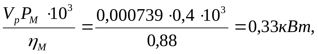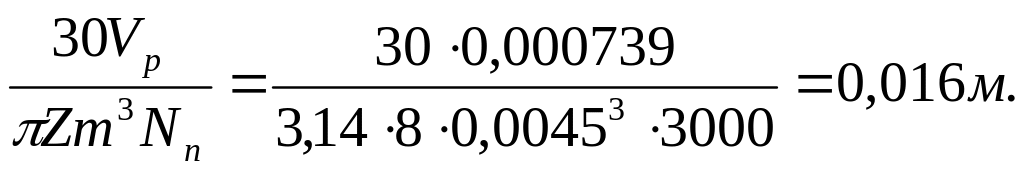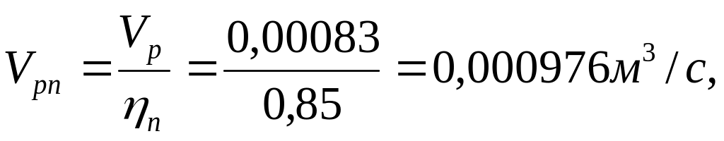 Vp = Vp' /n = 0,00044/0,6 = 0,000739 м3/с,