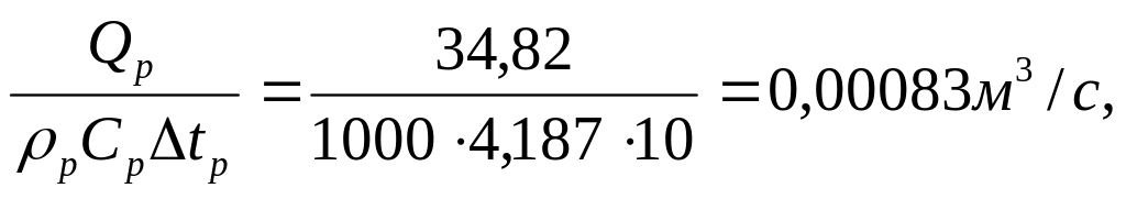 Ср – теплоємність охолоджуючої рідини, Ср = 4,187 кДж/кгк;