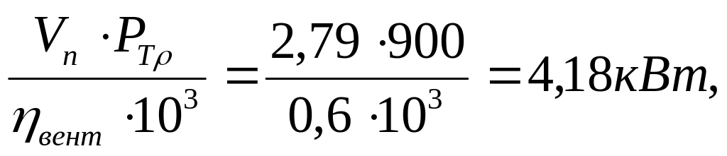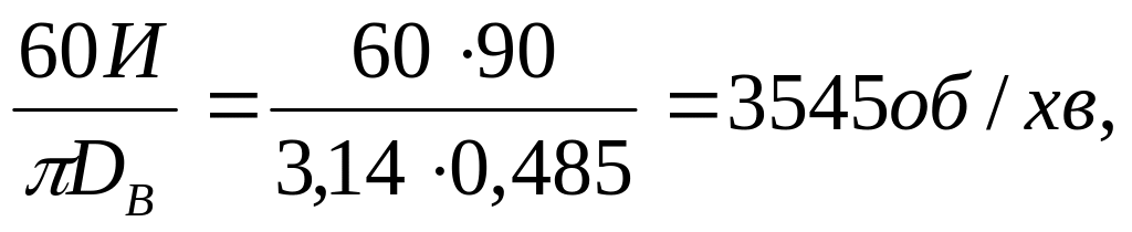 де И = 80 ... 125 м/с = 90 м/с – лінійна швидкість кінця лопаті робочого колеса вентилятора.