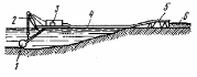 Для разработки грунта под водой в реках и водоемах применяются плавучие землесосные снаряды (рис.2). В состав оборудования земснаряда входят грунтозаборное (всасывающее) устройство, землесос, механизмы регулирования режима работы и перемещения.