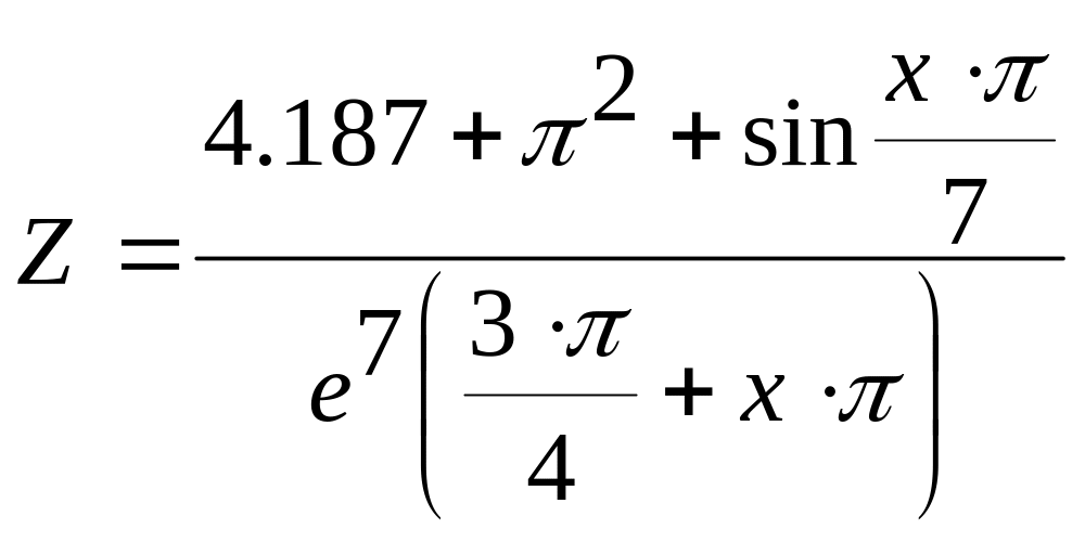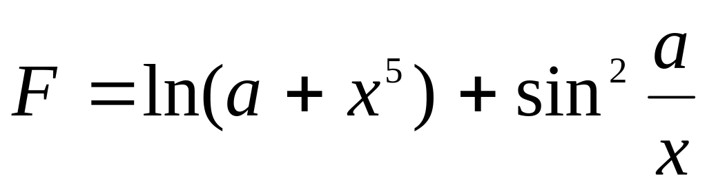 Из блок-схемы видно, что в начале выполнения программы нам необходимо ввести с клавиатуры значения переменных х и a. Переменные В и С – вспомогательные, их мы используем для разбиения исходной формулы на отдельные выражения для удобства программирования.