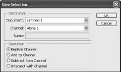 Раскрывающийся список Channel (Канал) позволяет указать канал для сохранения. По умолчанию выбрано значение New (Новый), при котором выделение будет сохранено в новый альфа-канал; в этом случае имя нового канала можно указать в поле Name (Имя). Если же в документе уже существует один или несколько альфа-каналов, то они будут доступны для выбора в раскрывающемся списке Channel (Канал) и новое выделение можно будет сохранить поверх них (поле Name (Имя) в этом случае не активно).