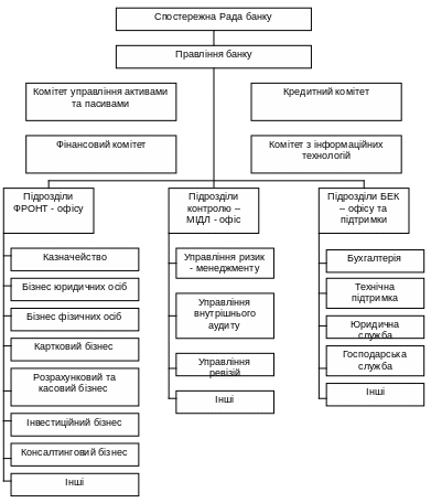 Рис. 9.3. Триступенева організаційна структура сучасного банку