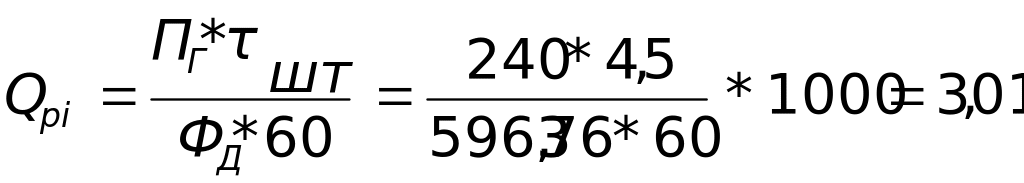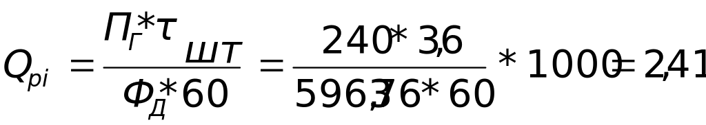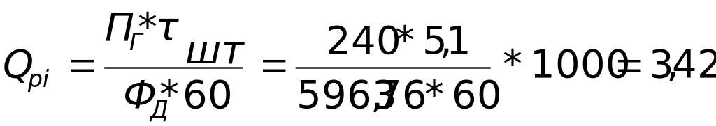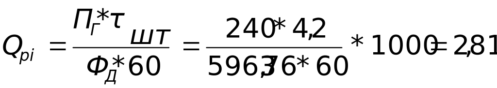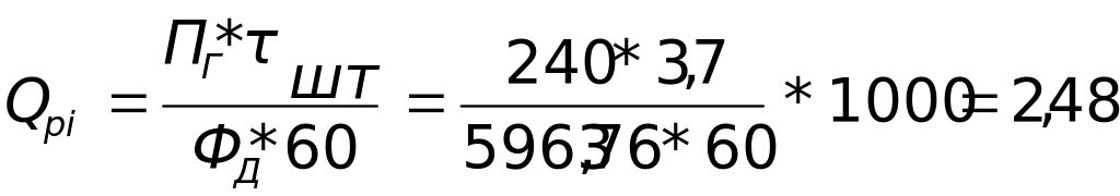 П ринятое количество рабочих мест (Qпi) равно ближайшему целому числу при округлении Qpi так, чтобы загрузка рабочих мест была возможно полнее.