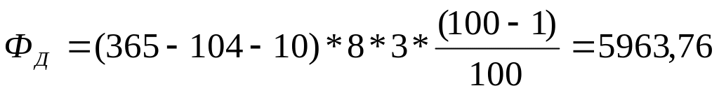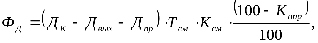 Действительный фонд времени рассчитывают по формуле (2)
