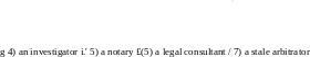 3. The duties of a barrister, a procurator, an investigator, a notary, a legal adviser, a judge, a state arbitrator.