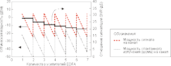 Рисунок 13 - Диаграммы мощности в межрегенерационной линии с каскадом усилителей EDFA