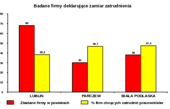Pracodawcy biorący udział w badaniach zostali zapytani o plany zatrudniania pracowników. Zatrudnienie pracownika mogło być związane z obsadzeniem stanowiska już istniejącego w firmie lub też planowanego utworzenia nowego miejsca pracy. Na 136 pracodawców z trzech badanych powiatów, 58 (42,6%) wskazało na zamiar zatrudnienia pracownika. Lublinie zamiar taki wskazało 38,2% respondentów, w Parczewie 46,7% a w Białej Podlaskiej 47,4% przebadanych firm.