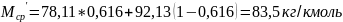 4) Средняя мольная масса жидкости в колонне: