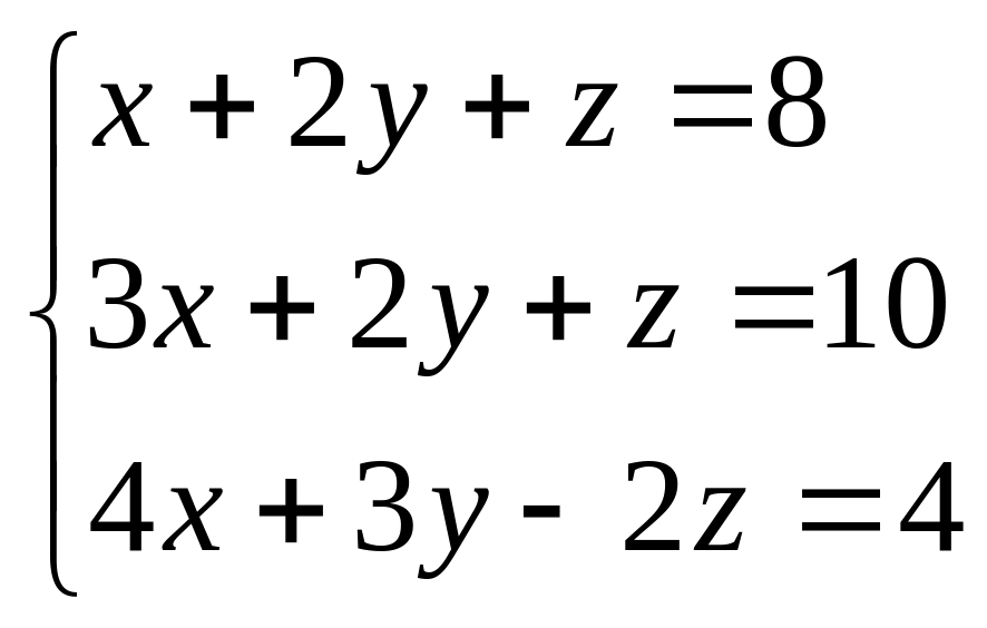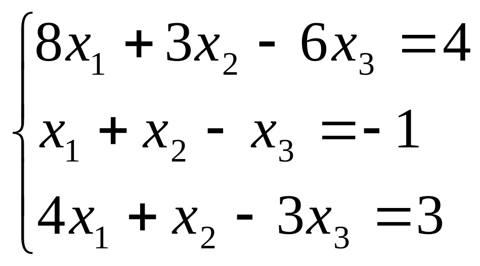 Система трех линейных уравнений с тремя неизвестными x1 , x2, x3 имеет вид: