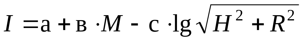 Интенсивность сотрясений I на конкретной площади по 12-балльной шкале может быть определена по формуле