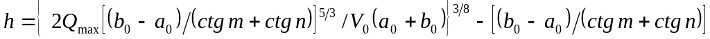 где Smax – площадь поперечного сечения потока при прохождении паводка, м2, определяемая по формулам (2.1) и (2.2), в которые вместо h0 подставляют (h0+ h), а вместо b0 подставляют b.