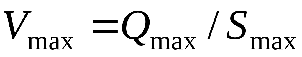 6. Определяют максимальную скорость потока Vmax воды при прохождении паводка по формуле