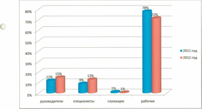 Из общего числа работающих в Обществе на 01.01.2012 года (118 человек) персонал распределяется по следующим категориям: