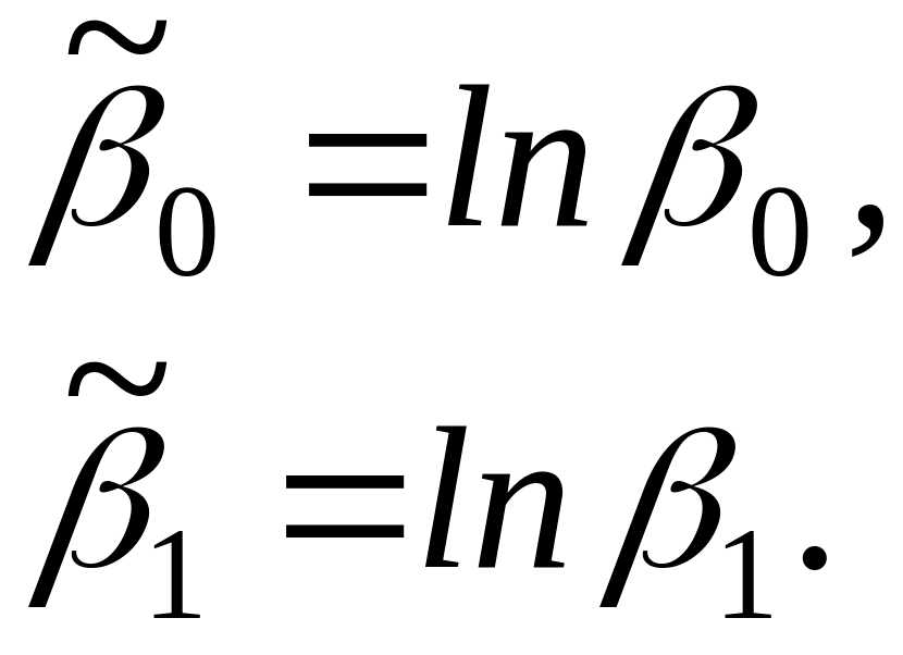 2) Для линеаризации (приведения нелинейной функции к линейной) функций (4.1.3) и (4.1.4) поступим следующим образом: прологарифмируем обе части этих уравнений по произвольному основанию. (В экономических задачах чаще всего используют натуральные логарифмы ln). Уравнение (4.1.3) преобразуется к виду: