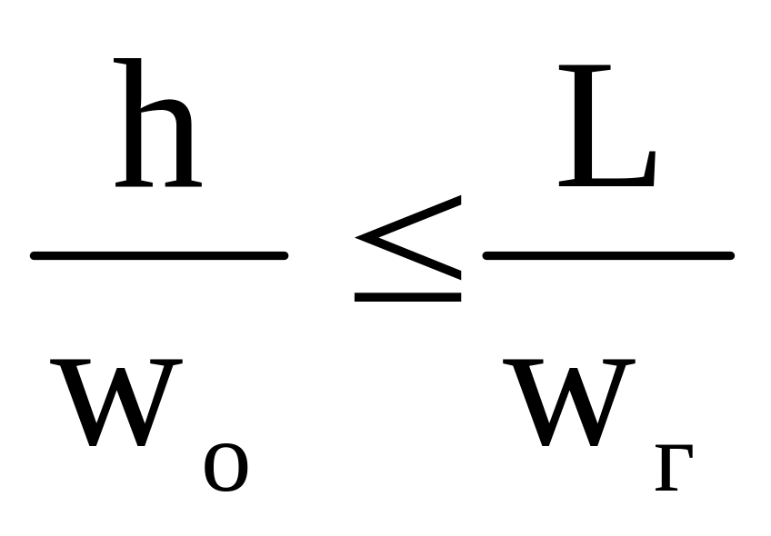 Позначимо через wг швидкість руху газу в камері, L – довжину полички, h – відстань між поличками та b – ширину камери (рис. 1.39). Розглянемо частинку, яка разом із газовим потоком потрапила між двома суміжними поличками. Під дією сили тиску потоку частинка рухається вздовж каналу і поступово під дією сили тяжіння осаджується. Для того, щоб відбулося її осадження на поверхню полички, необхідне виконання умови – час осадження частинки повинен бути меншим від часу перебування газу в апараті. Час осадження частинки становить: