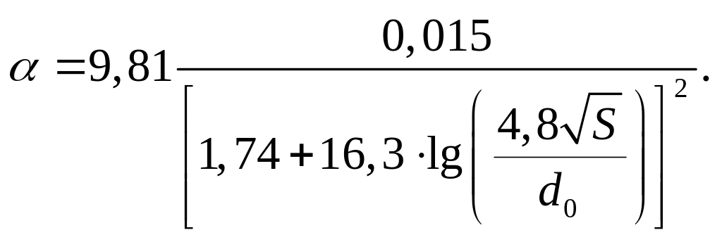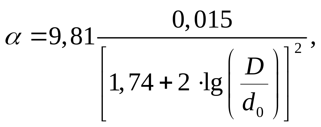 α – коефіцієнт аеродинамічного опору тертя. Залежить від типу кріплення, форми виробки і визначається за наступними формулами: