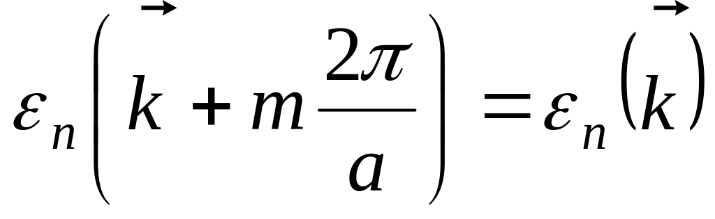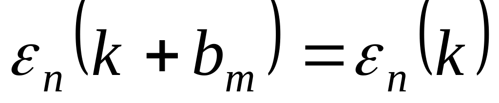Следовательно, приведенный на рисунке §7 энергетический спектр электронов кристалла обладает зеркальной симметрией относительно оси ординат. Нами показано в §6, что энергия электронов в каждой зоне является периодической функцией с периодом обратной решетки: