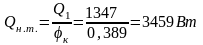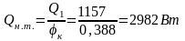 Расчетный тепловой поток от прибора в рассматриваемом помещении: